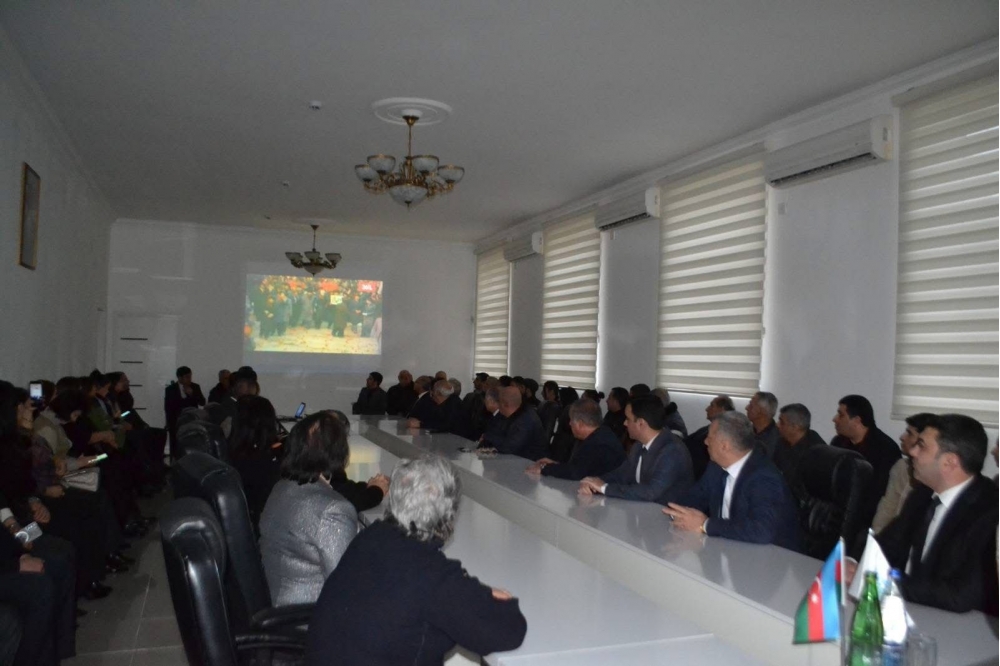 Tədbiri açan İcra Hakimiyyətinin başçısı İlham İsmayılov xalqımızın azadlıq mübarizəsinin şanlı səhifələrini vərəqləyib. Qeyd edib ki, 20 Yanvar Azərbaycan xalqının azadlıq mübarizəsinin başlanığıc tarixidir. O dövrdəki hadisələrdən, faciənin baş vermə səbəblərindən, sovet qoşunlarının əliyalın insanlara qarşı silahlı hücumlarından və cinayətlərindən, hakimiyyətdə mövcud olan xaos və böhrandan danışan İlham İsmayılov yanvarın 21-də Moskvadakı Azərbaycan nümayəndəliyinə gedərək hadisələrə qəti etirazını bildirən Ulu Öndər Heydər Əliyevin xalqa, vətənə göstərdiyi məhəbbətindən bəhs edib. Ulu Öndərin ikinci hakimiyyəti dövründə dövlətimizin möhkəmlənməsi, müstəqilliyinin qorunması yolundakı xidmətlərindən danışıb. Silahlı Qüvvələrin Ali Baş Komandanı İlham Əliyevin rəhbərliyi ilə hərb tariximizdəki uğurlardan, torpaqlarımızın azad olunmasından söz açan İcra başçısı bütün şəhidlərimizə Allahdan rəhmət diləyib. YAP şəhər təşkilatının sədri Bəxtiyar Mustafayev şərəfli və şanlı tariximizdən, qəhrəman vətən fədailərinin, şəhidlərimizin fədakarlıqlarından, uzun illərdən sonra işğaldan azad olan yurd yerlərimizdə Ali Baş Komandanın Azərbaycanın üçrəngli bayrağını ucaltdığından, tarixi ədalətin bərpa olunmasından danışıb.