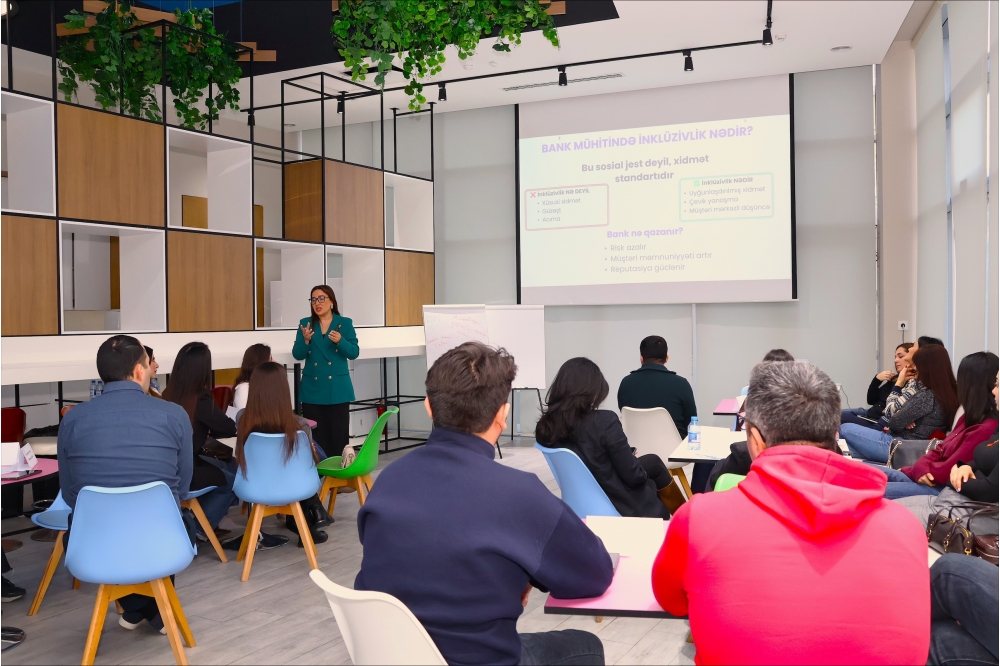 “İki sahil” xəbər verir ki, təlim proqramının əsas məqsədi bank mühitində inklüzivlik anlayışının mahiyyətini izah etmək, müştəri davranışlarına fərqli baxış bucağından yanaşmanı formalaşdırmaq, eləcə də xidmət proseslərinin insan hüquqlarına əsaslanan, çevik və müştəriyönümlü yanaşma əsasında qurulmasının vacibliyini ön plana çıxarmaq olub.