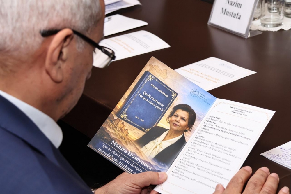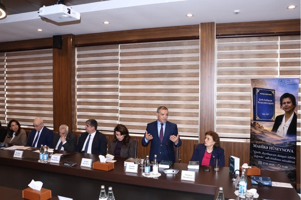 Yanvarın 27-də Bakı Slavyan Universitetində (BSU) Azərbaycan Respublikasının “Azərbaycan Mədəniyyəti-2040” Konsepsiyasına uyğun olaraq BSU-nun Tədbirlər Planı çərçivəsində Azərbaycan Dövlət Pedaqoji Universitetinin (ADPU) Beynəlxalq əlaqələr üzrə prorektoru, filologiya elmləri doktoru, professor, Prezident təqaüdçüsü, Əməkdar müəllim, Qərbi Azərbaycan İcması(QAİ) İdarə Heyətinin üzvü Mahirə Hüseynovanın " Qərbi Azərbaycan: Danışan izlərin işığında" adlı kitabının təqdimatı keçirilib.