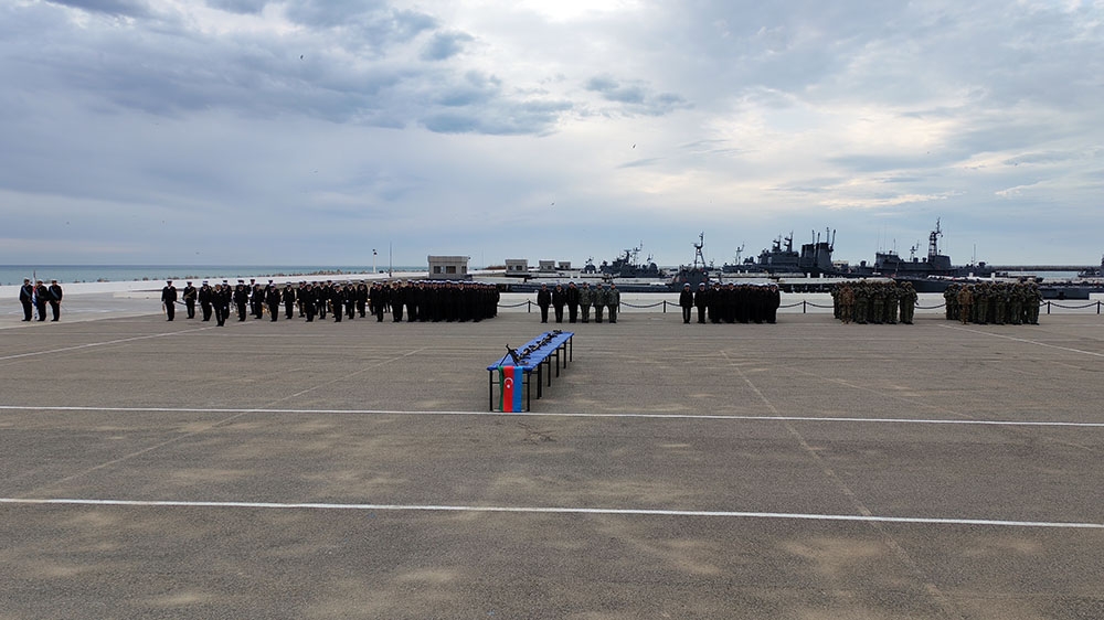 Hərbi orkestrlərin müşayiəti ilə döyüş bayraqları təntənəli surətdə sıra meydanlarına gətirildikdən sonra tədbirlər açıq elan olunub.