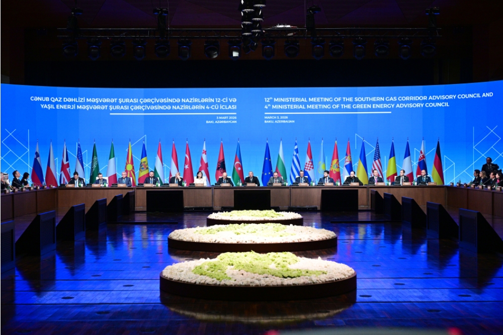 Martın 3-də Bakı Konqres Mərkəzində Cənub Qaz Dəhlizi Məşvərət Şurası çərçivəsində nazirlərin 12-ci və Yaşıl Enerji Məşvərət Şurası çərçivəsində nazirlərin 4-cü iclasları keçirilir.