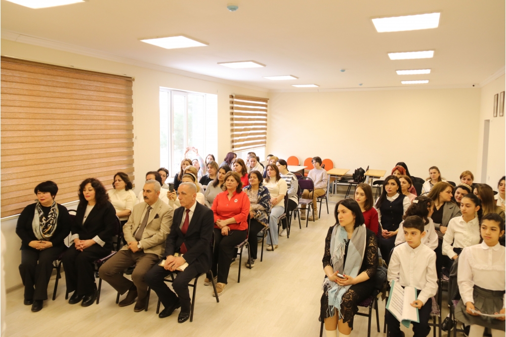 Sonra L.Kərimova MEMİM tərəfindən tərtib olunan “Asəf Zeynallı. Seçilmiş əsərlər” kitabını məktəbin kitabxanasına hədiyyə edib.