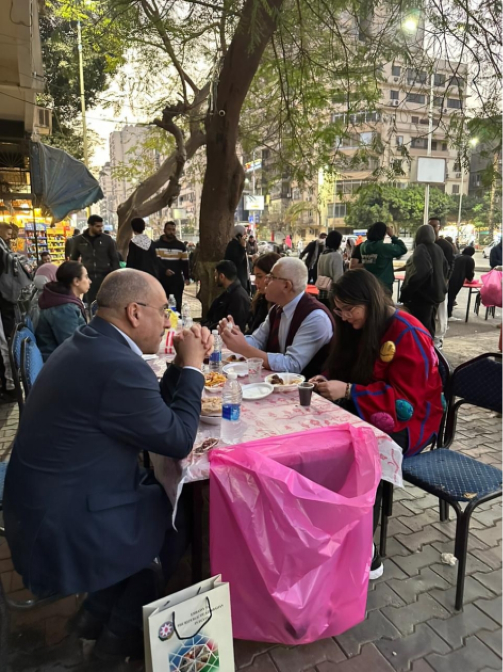 “İki sahil” xəbər verir ki, iftar tədbirinin təşkilinə Azərbaycanın Dövlət Neft Şirkəti (SOCAR) maddi, Azərbaycanın Misirdəki səfirliyi təşkilati dəstək göstərib. Təşəbbüs çərçivəsində hazırlanan 1000 pay yemək oruc tutanlara paylanıb və yüzlərlə insan üçün iftar süfrəsi açılıb.
