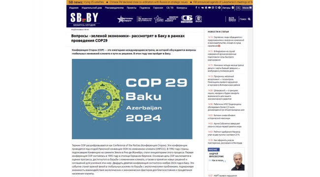 “Belarus seqodnya”: COP29 iqlim dəyişmələrinə qarşı beynəlxalq səylərdə mühüm mərhələ olacaq