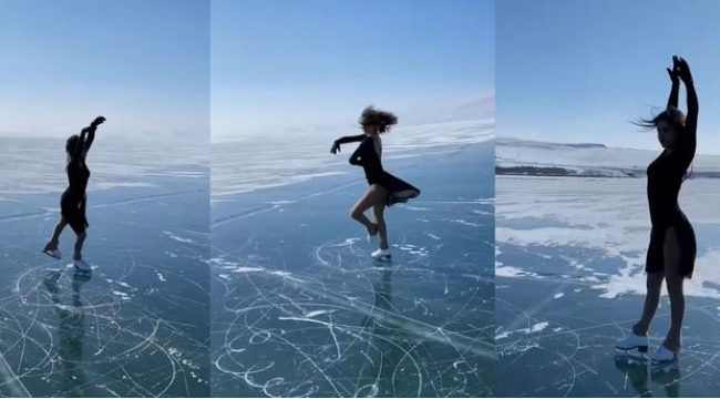 Türkiyəli idmançıdan buz bağlayan göldə möhtəşəm performans -