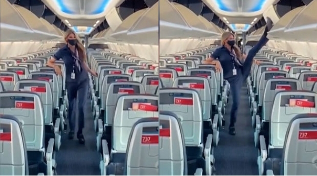 Stüardessa akrobatik bacarıqları ilə populyarlıq qazandı -