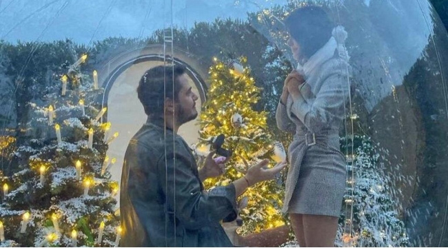Sevgilisinə qar kürəsində evlilik təklif etdi -
