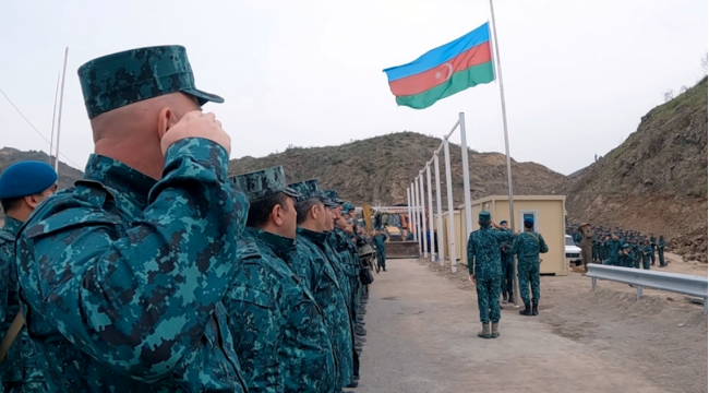 Laçın-Xankəndi yolunun başlanğıcındakı sərhəd-buraxılış məntəqəsində bayraq qaldırılma mərasimi -