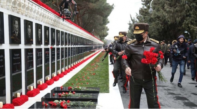 Müdafiə Nazirliyinin rəhbərliyi Şəhidlər xiyabanını ziyarət edib