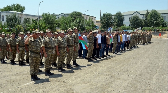 Ehtiyata buraxılan hərbçilərin yola salınması mərasimi keçirilib