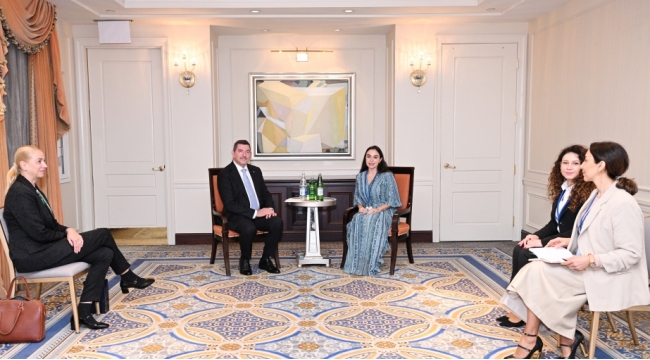 Heydər Əliyev Fondunun vitse-prezidenti Leyla Əliyeva Nyu-Yorkda Sloveniya Prezidentinin həyat yoldaşı Ales Musarla görüşüb
