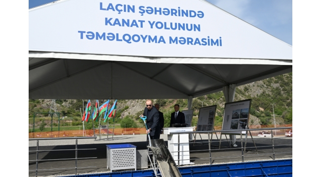 Prezident İlham Əliyev Laçın kanat yolunun təməlini qoyub