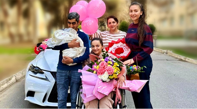 Serebral iflic olan I qrup əlil qadın ana olub