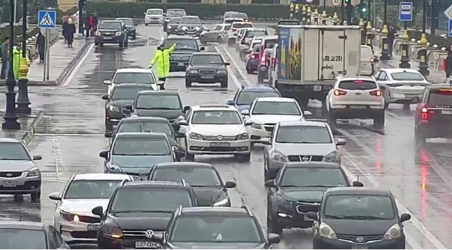 Yağışa görə paytaxtın bir neçə küçə və prospektində sıxlıq müşahidə olunur -