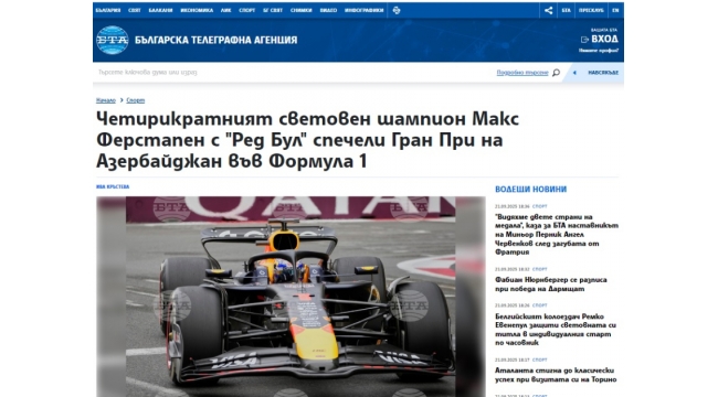 Rumıniya, Bolqarıstan, Yunanıstan və Xorvatiya mediası Formula 1 üzrə Bakı Qran-Prisindən yazıb