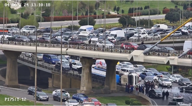 Heydər Əliyev prospektində yük maşını aşıb -