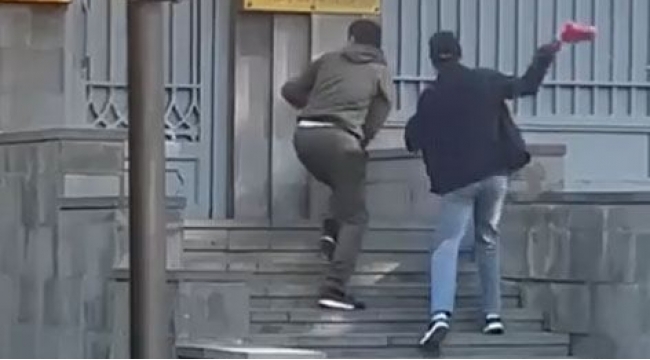 Rusiyanın İrəvandakı səfirliyinin darvazalarına boya töküblər -