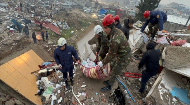 FHN xilasediciləri Kahramanmaraşda xilasetmə əməliyyatlarına başlayıb, 1 nəfərin meyiti dağıntılar altından çıxarılıb -