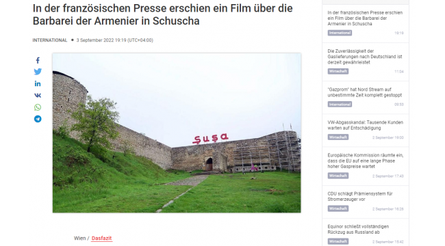 Ermənilərin Şuşada törətdikləri vandalizm haqqında film Avstriya mediasında da yayımlanıb