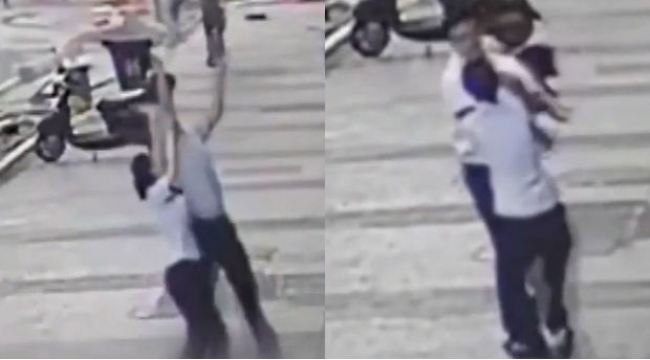 Beşinci mərtəbədən yıxılan azyaşlını havada tutdular