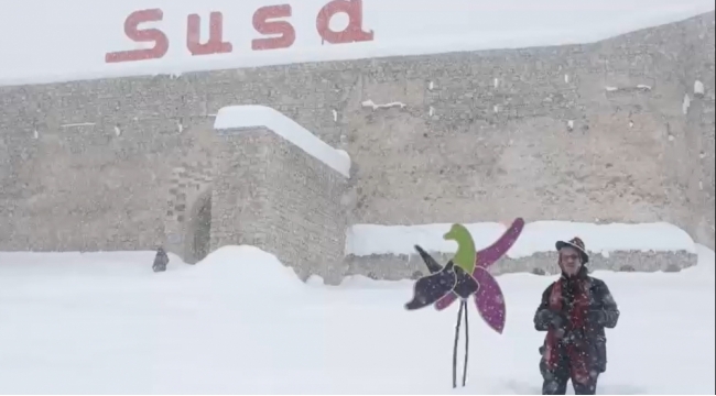 Reza Deqati Şuşa qalası önündə bayram sevincini bölüşüb