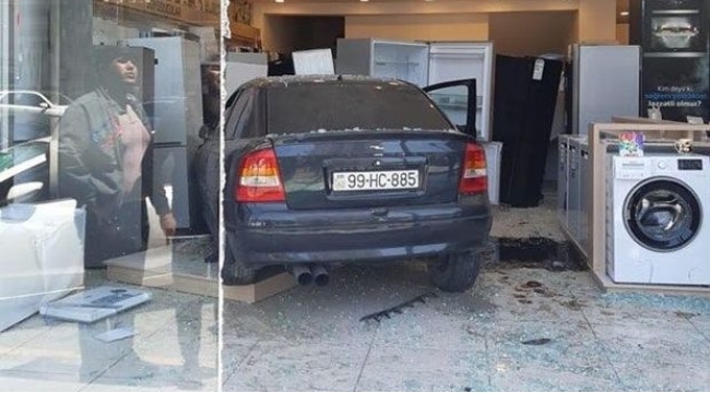 Bakıda maşın məşhur mağazaya çırpıldı -