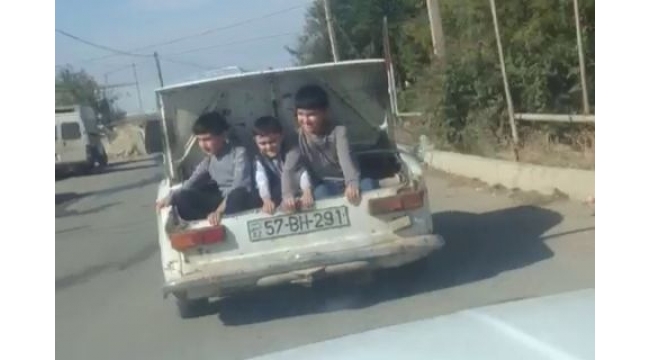 Azərbaycanda sürücü uşaqları baqajda daşıdı