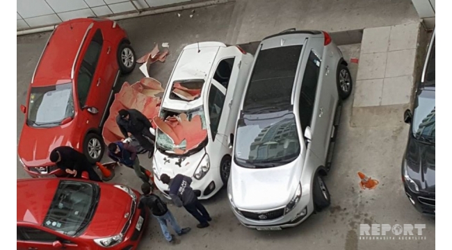 Bakıda külək su çənini avtomobilin üzərinə aşırıb
