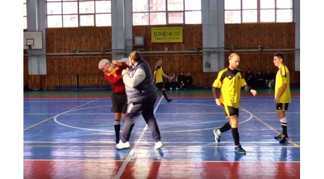 Ukraynada baş məşqçi oyun vaxtı bir zərbə ilə hakimi nokauta salıb