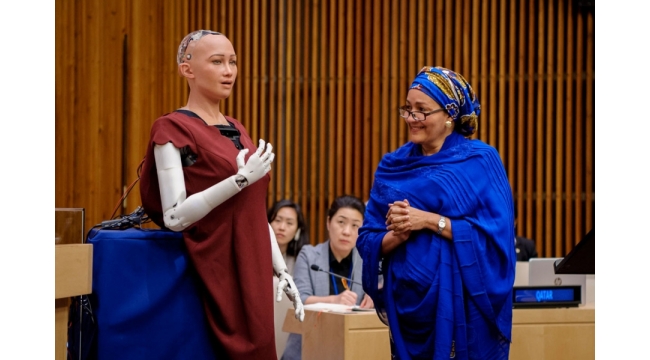 Robot Sofiya BMT-nin mənzil-qərargahında keçirilən müzakirələrdə iştirak edib