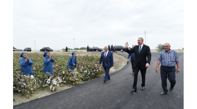 İlham Əliyev Neftçalada pambıq sahəsi ilə tanış olub