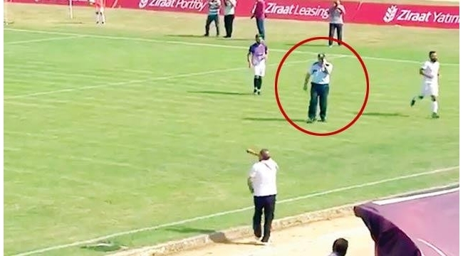 Türkiyədə futbol matçı zamanı telefonla danışan polis meydana girib