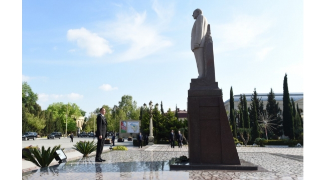 İlham Əliyev Yevlaxda ulu öndər Heydər Əliyevin abidəsini ziyarət edib