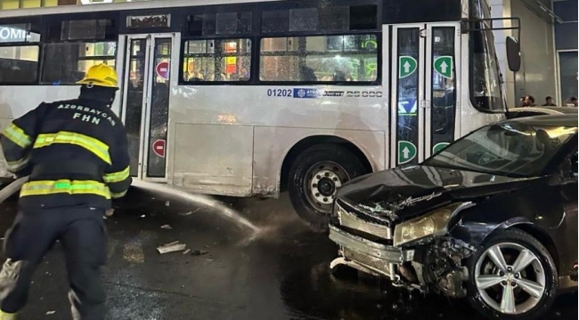 Bakıda sərnişin avtobusu 10-dan çox maşını əzib -