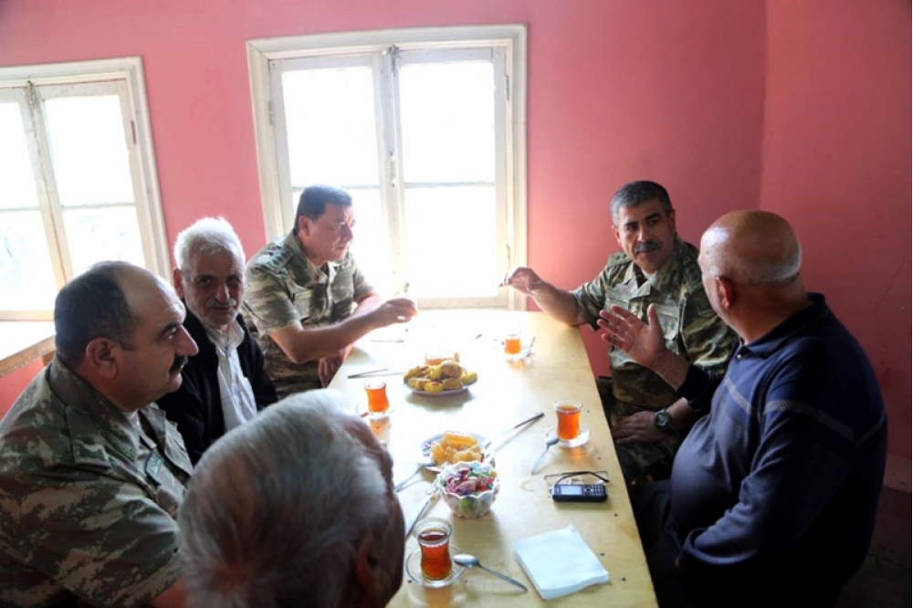 Sonra nazir sərhədyanı ucqar dağ kəndlərindən birində yerli sakinlərlə görüşərək, yaşayış məntəqələrimizin müdafiəsinin və əhalinin təhlükəsizliyinin təmin edilməsi barədə söhbətlər aparıb.