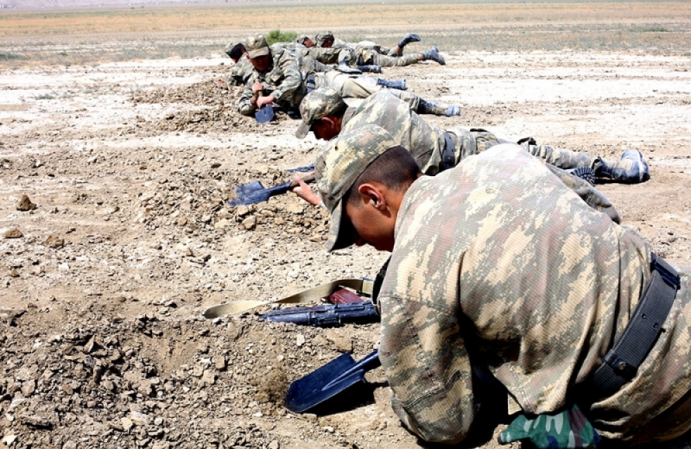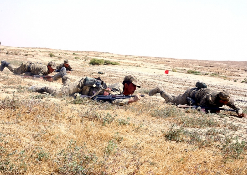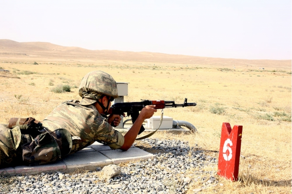 Heydər Əliyev adına Azərbaycan Ali Hərbi Məktəbin birinci kurs kursantları ilkin hərbi hazırlıq çərçivəsində atıcı silahlardan atış çalışmalarını icra edirlər.