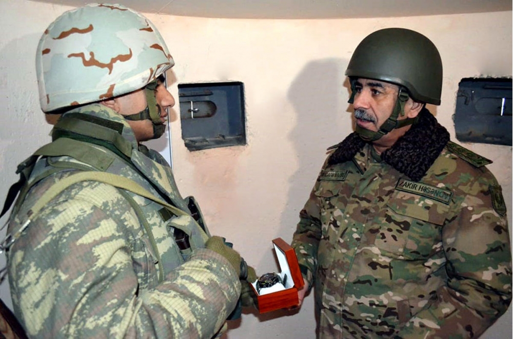 General-polkovnik Zakir Həsənov ön xətt bölmələrində xidmət edən şəxsi heyətin sosial-məişət şəraitinin daha da yaxşılaşdırılması istiqamətində həyata keçirilən işlərlə maraqlanıb və bu tədbirlərin daha da keyfiyyətlə yerinə yetirilməsi ilə bağlı müvafiq tapşırıqlar verib.