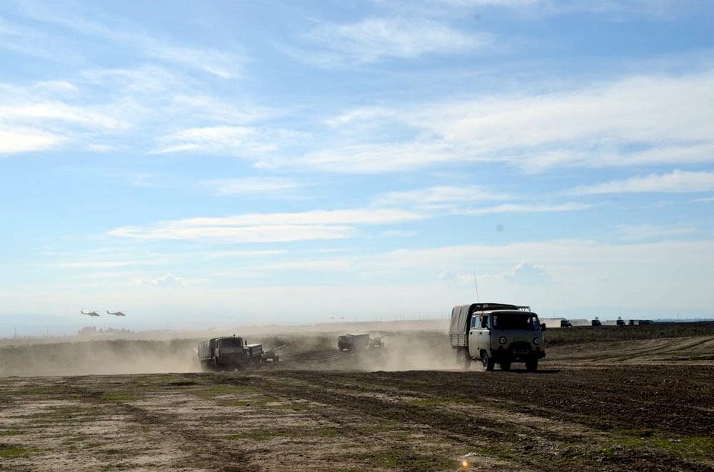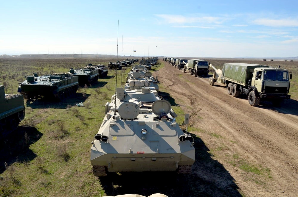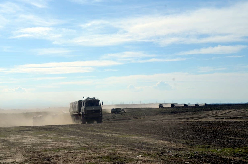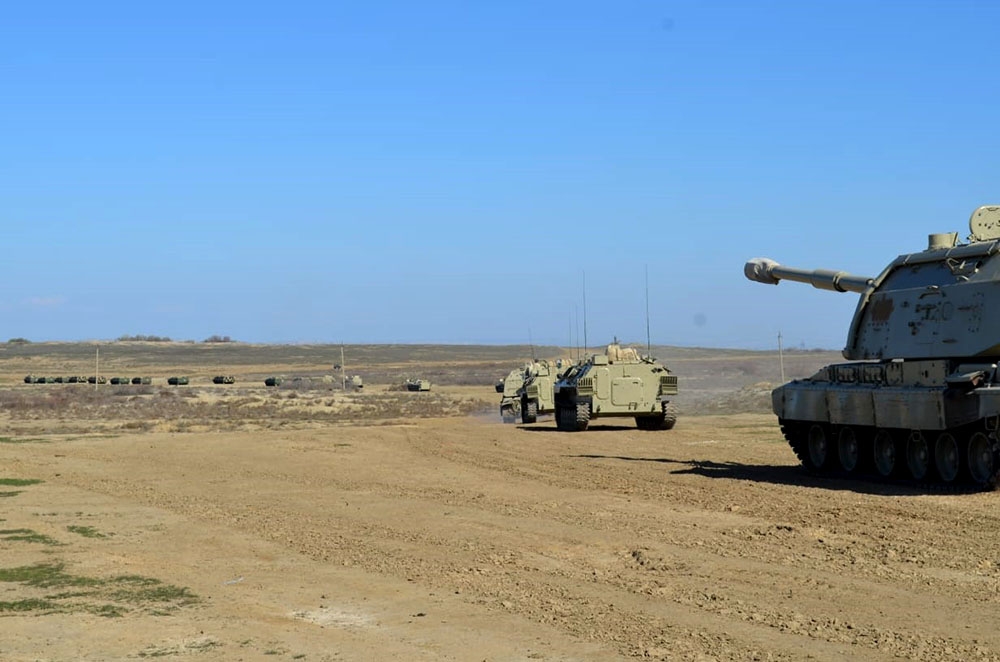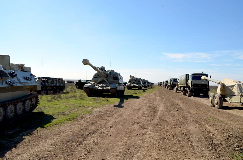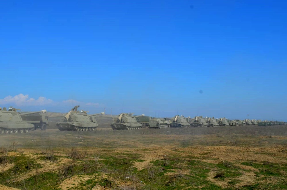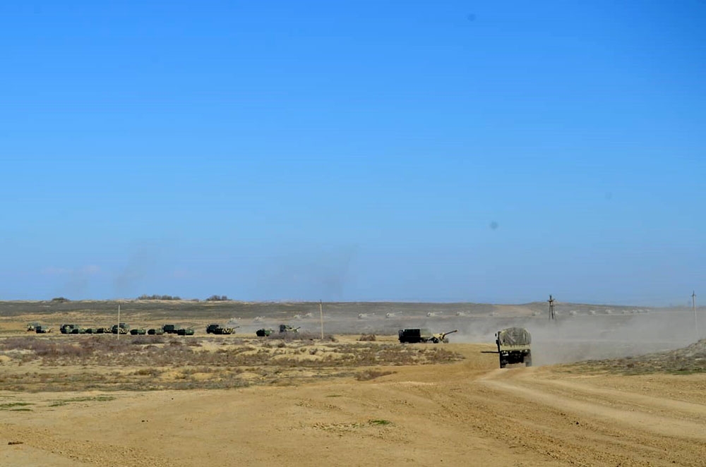 Genişmiqyaslı təlimlərə cəlb edilən raket və artilleriya qoşunlarının bölmələri marş keçirərək atəş mövqelərini tutublar.