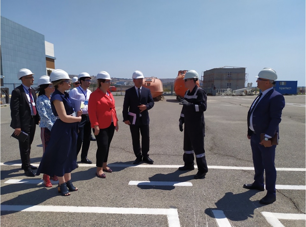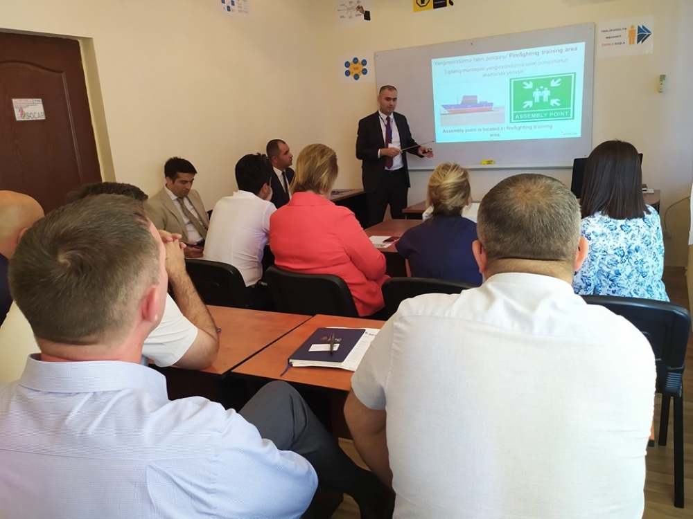 SOCAR-ın Təlim, Tədris və Sertifikatlaşdırma İdarəsinin (TTSİ) Dənizdə İnsan Həyatının Mühafizəsi üzrə Təlim Mərkəzinə sahə səfəri edən BP şirkətinin rəhbər heyəti və aparıcı mütəxəssisləri Mərkəzin imkanları ilə tanış olublar.