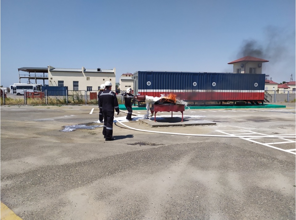 Praktiki məşğələlər zamanı helikopter bucurğadı ilə insanların sudan xilas olunması, çevrilmiş xilasedici salın ilkin vəziyyətə gətirilməsi, xilasedici qayıqların suya endirilməsi və sudan qaldırılması, xilasedici corabla təxliyə, şərti yanğınların söndürülməsi, nəfəs aparatları ilə “Tüstü labirinti”nə daxil olaraq xəsarət alanların axtarışı və təxliyə edilməsi, ilk tibbi yardım göstərilməsi qaydaları nümayiş olunub.