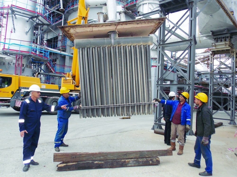 “miqalka”ları (qapayıcı) yeniləri ilə əvəz edilmişdir. Daxili torkret beton izolə qatlarının sökülüb-dağılmış hissələri bərpa olunmuş, nəqliyyat xəttindəki kubot təmir edilmişdir. Su buxarı paylayıcısı dəyişdiriləcəkdir. Regeneratorda qüsurlu 9 ədəd hava paylayıcısı dəyişdiriləcək, eyni zamanda, sıradan çıxmış torkret-beton hissələri bərpa olunacaqdır. Hal-hazırda reaktor və regeneratorda təmir işləri yekunlaşmaq üzrədir. 100-cü bölmənin reaktorundan katalizator çıxarılacaq, ələnərək yenidən yerinə tökülməsi işləri yerinə yetiriləcəkdir. 300-cü bölmədə K-303/2-də şlyom xətti, K-303/1,2-də qüsurlu əlaqələndirici xətlər dəyişdirilir. Məşəl xətti və K-304, K-306-nın şlyom xətti dəyişdirilir. K-201-in 13 ədəd boşqabları yeniləri ilə əvəz olunacaqdır. 400-cü bölmədə Ek-401/1-4, Q-401/1,2-nin boru dəsti çöküntülərdən təmizlənmiş, buxar qızdırıcısının boru xətt dəsti çıxarılaraq təmir olunmuş, qüsurlu olanlar dəyişdirilmişdir. Qoruyucu klapanlar təmir edilmişdir. İstehsalatda yerinə yetiriləcək bu işlərdən əlavə, maye qazlar parkında və digər sahələrdə də müvafiq təmir işləri görüləcəkdir.