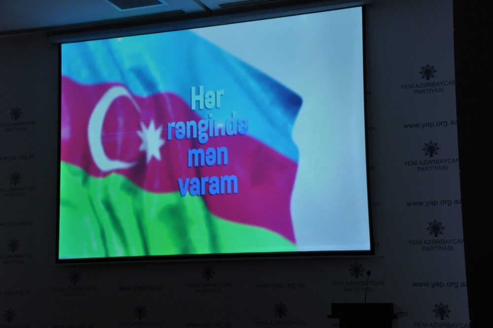 Noyabrın 8-də Yeni Azərbaycan Partiyasının İcra Katibliyində YAP Gənclər Birliyinin və Dini Qurumlarla İş üzrə Dövlət Komitəsinin birgə təşkilatçılığı ilə 9 Noyabr-Dövlət Bayrağı Gününə həsr olunmuş “Hər rəngində mən varam” adlı sənədli filmin təqdimat mərasimi keçirilib.