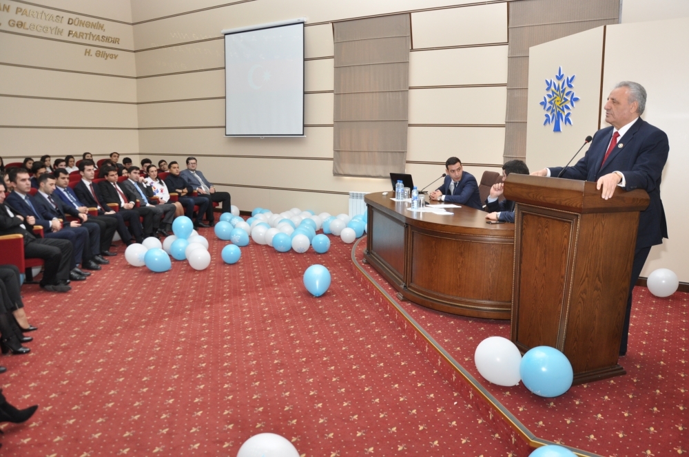 Tədbirdə YAP Yasamal rayon təşkilatının sədri Tağı Əhmədov çıxış edərək bildirdi ki, gənclik gələcəkdir, inkişafdır, tərəqqidir. Gənclər hər bir ölkənin ictimai-siyasi, sosial-iqtisadi, elmi-mədəni-humanitar həyatında mühüm rola malik potensial qüvvə kimi vacib yer tuturlar. Aktiv və avanqard qüvvə kimi gənclər ölkə həyatının bütün sahələrində öncül yer tutmaqla yüksək hədəflərə çatmağa zəmin yaradan zəngin bazadır. Müstəqil Azərbaycanın gənclər siyasətinin formalaşmasında, təbii ki, ulu öndər Heydər Əliyevin əvəzsiz xidməti vardır. Ümummilli Lider xalqın təkidli tələbi ilə hakimiyyətə qayıtdıqdan sonra sağlam düşüncəli yeni nəslin yetişdirilməsini dövlət və cəmiyyətin mühüm vəzifəsi hesab edirdi. Dahi şəxsiyyət gənclərin dövlətin və cəmiyyətin sosial-iqtisadi, ictimai-siyasi və mədəni həyatında iştirakının təmin edilməsini vacib məsələlərdən biri kimi elan etmişdi.