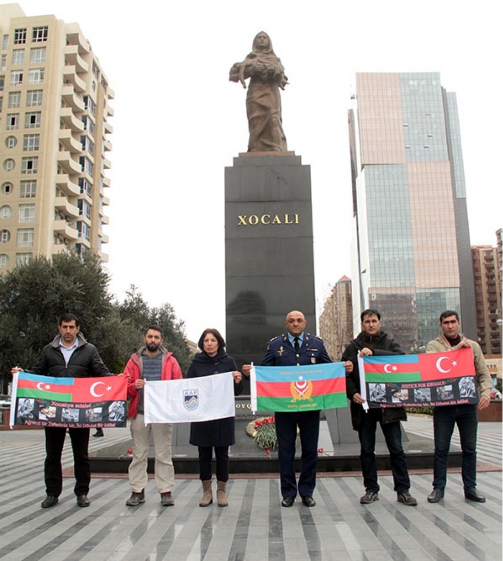 Səfərdən əvvəl iştirakçılar Xocalı soyqırımına həsr olunan “Ana harayı” abidəsinin önünə gül dəstələri qoyaraq, faciə qurbanlarının xatirələrini yad ediblər.