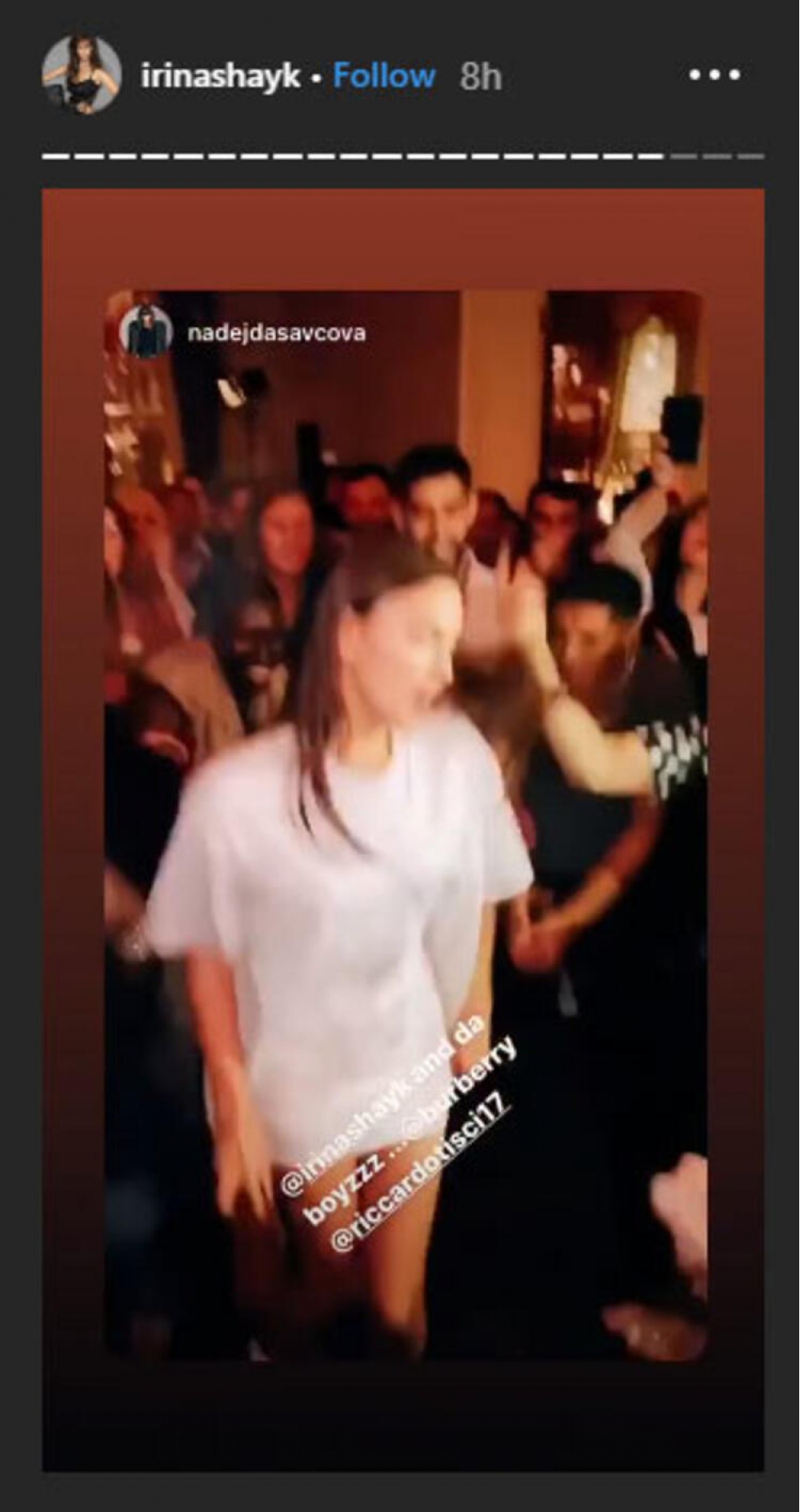 Moda nümayişindən sonra keçirilən əyləncə tədbirində hər kəs əyləndi. 34 yaşlı model İrina Şeyk həmin vaxt çəkilən cəlbedici videosunu “İnstagram” səhifəsindən paylaşıb.