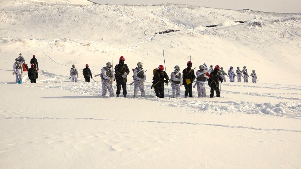 Qarlı-şaxtalı, çovğunlu havalar və çətin keçilə bilən ərazilər üçün nəzərdə tutulmuş təchizat, müxtəlif dağ ləvazimatları, döyüş vasitələri və ərzaqla təmin edilmiş hərbi qulluqçular təlim rayonunda hazırladıqları sığınacaqlarda yaşayıb gecələyiblər.