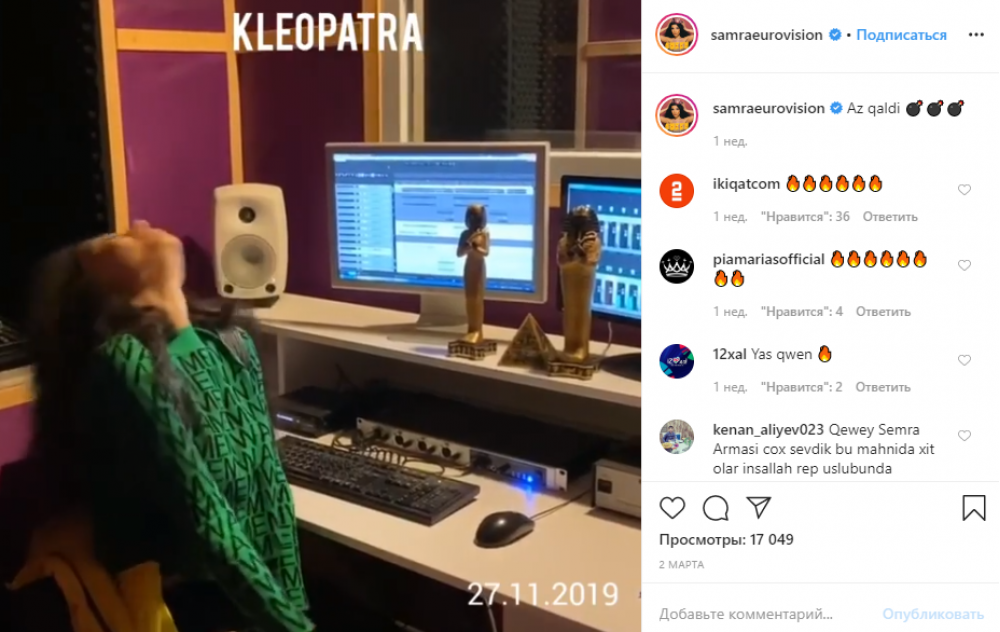 Bundan əlavə, Səmra Samirənin "Kleopatra" adlı mahnı oxuyacağı şayiələri yayıldıqdan qısa müddət sonra instaqramda video paylaşaraq 2019-cu ildə sözügedən adda musiqi ifa etdiyini, lakin hələ işıq üzü görmədiyini bildirib.