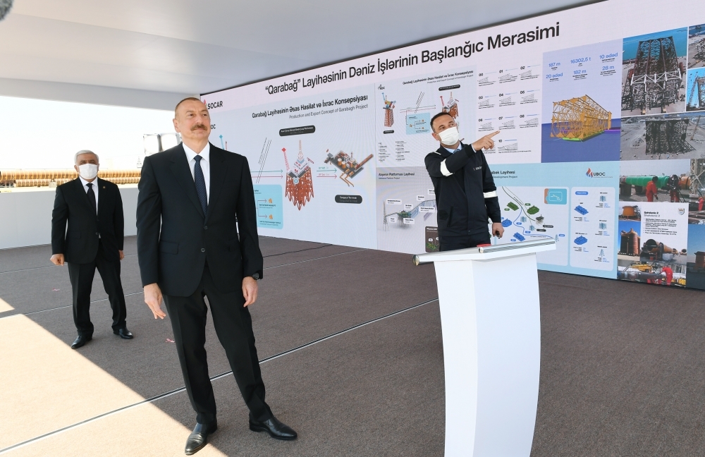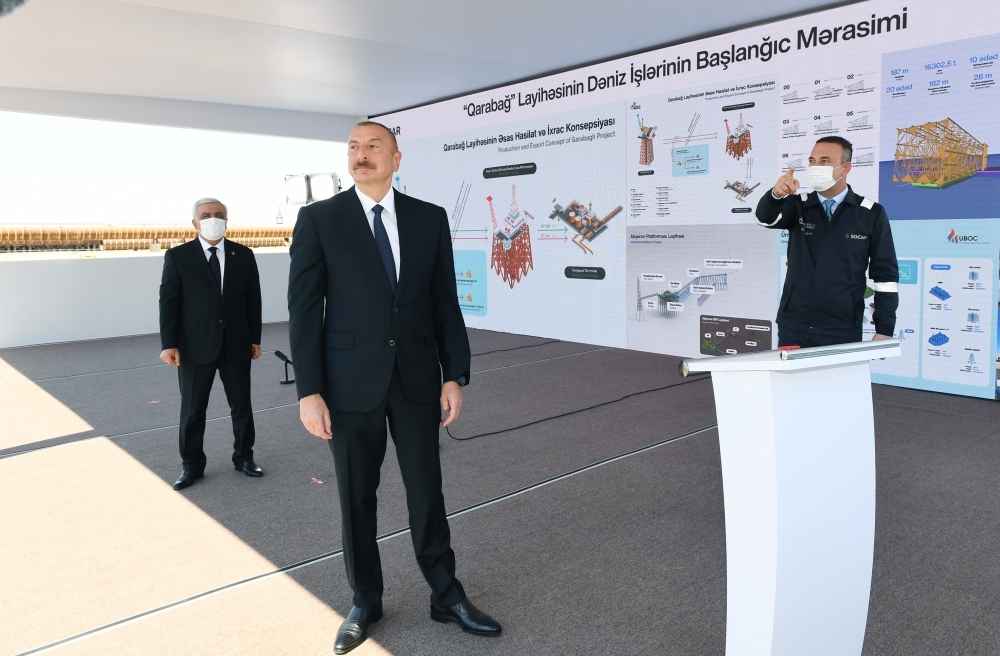 Azərbaycan Respublikasının Prezidenti İlham Əliyev avqustun 10-da Heydər Əliyev adına Bakı dərin özüllər zavodunda “Qarabağ” yatağının dayaq blokunun dənizə yola salınması mərasimində iştirak edib.