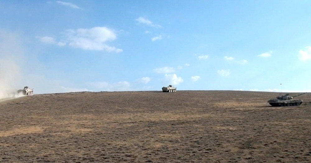 Bölmələr müasir döyüş vasitələrindən istifadə edərək şərti düşmən hücumunun dəf edilməsi tapşırıqlarını yerinə yetiriblər.