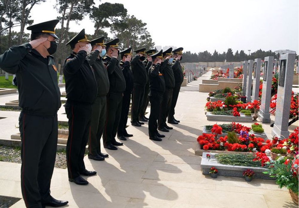 Müdafiə Nazirliyindən "İki sahil"ə verilən məlumata görə, əvvəlcə Azərbaycanın suverenliyi, ərazi bütövlüyü və torpaqlarımızın azadlığı uğrunda canından keçən şəhidlərimizin xatirəsi bir dəqiqəlik sükutla yad edilib.